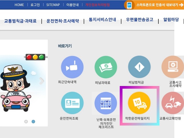 착한 운전 마일리지는 법규를 위반하지 않는 경우 1년에 10점의 마일리지를 받을 수 있으며, 1년마다 신청하여 4년 동안 법규를 지켰다면 40점의 마일리지가 생기는 겁니다.