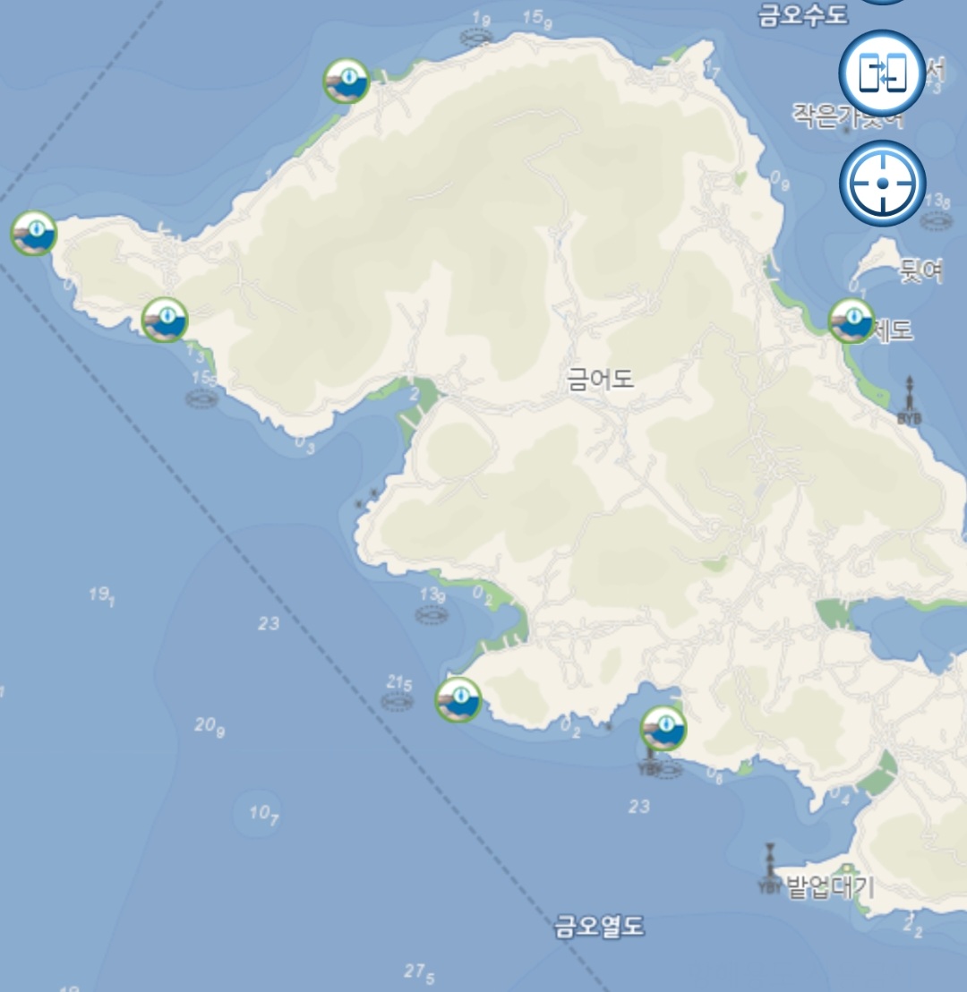 금오도와 안도 사이에 있는 반성수도는 수심이 얕고 협소하므로 통항하지 않는 것이 좋습니다.