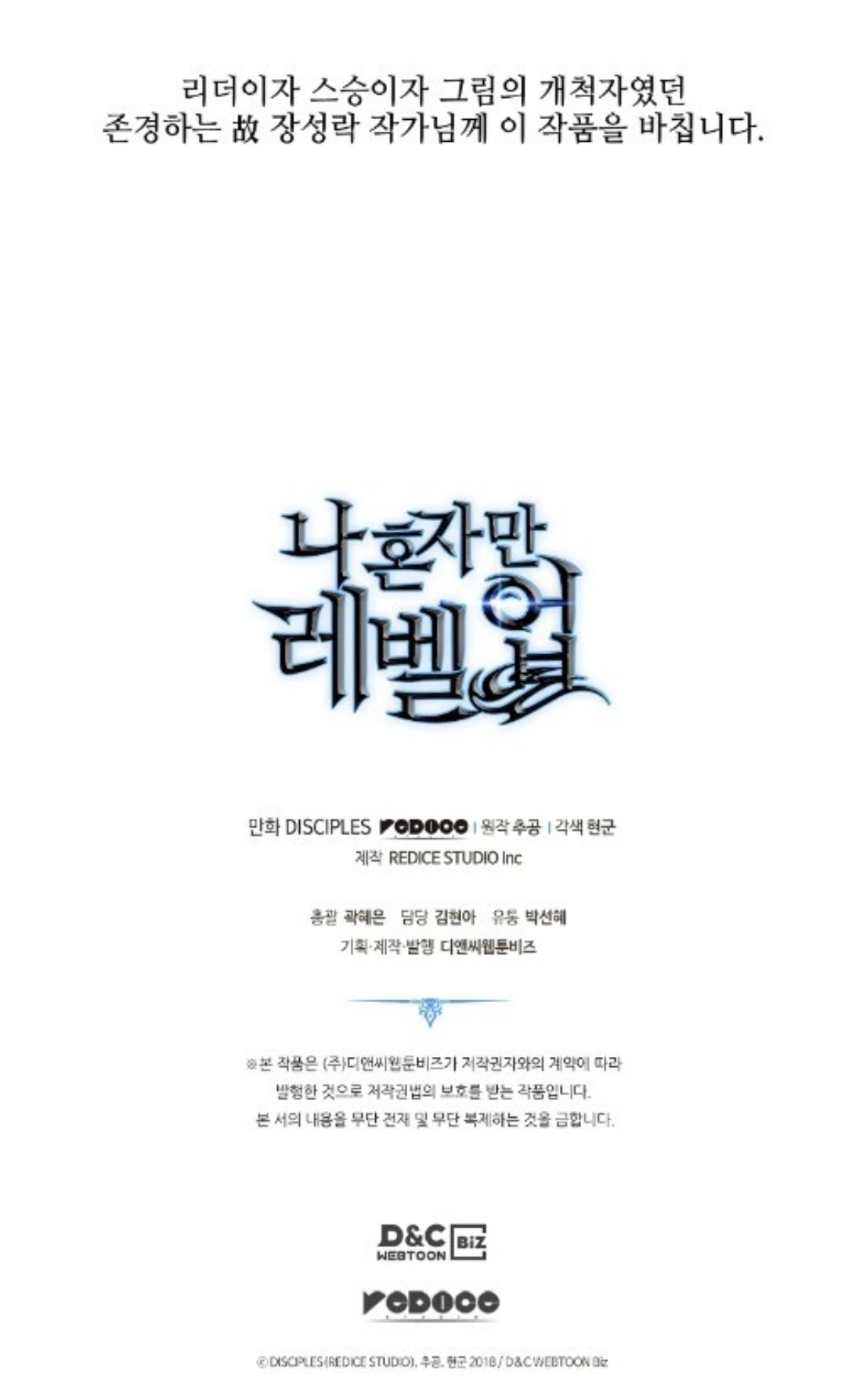 나 혼자만 레벨업 그림작가 : 장성락(별세 22.07.23)
