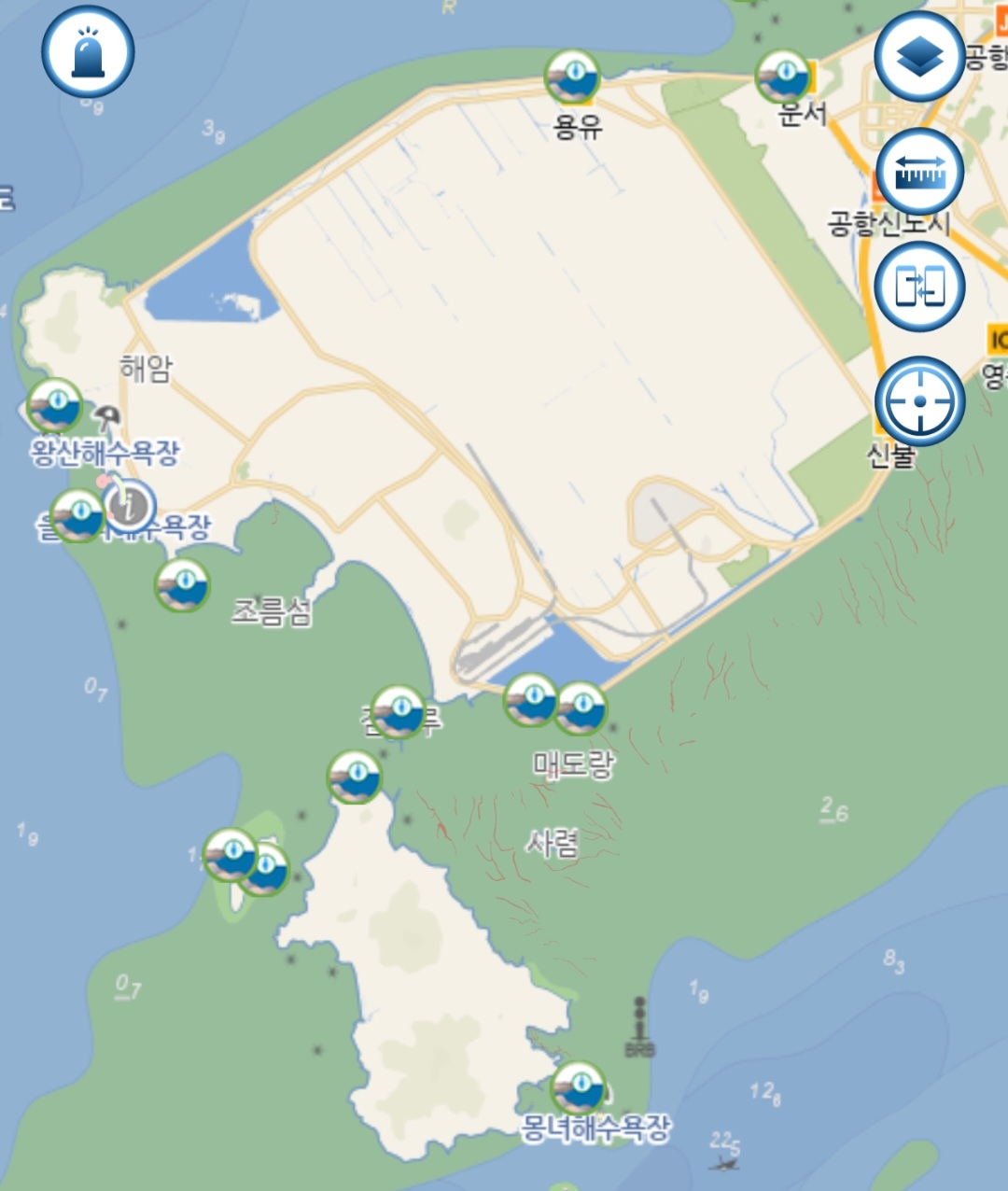 영종도와 용유도 남측으로는 저조 시 넓은 조간대 지역을 이루고 있으므로 운행하는 선박은 주의하여야 합니다.