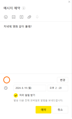 카카오톡에서 예약하여 메시지를 전송할 수 있나요?