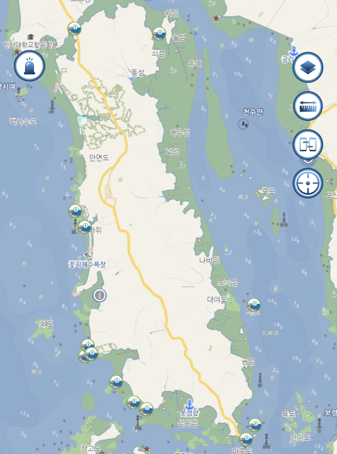 안면도 남부지역은 주변으로 크고 작은 간출암이 많이 존재하며, 특히 영목항 주변에는 양식장이 많이 존재하므로 운행하는 선박은 주의하여야 합니다.