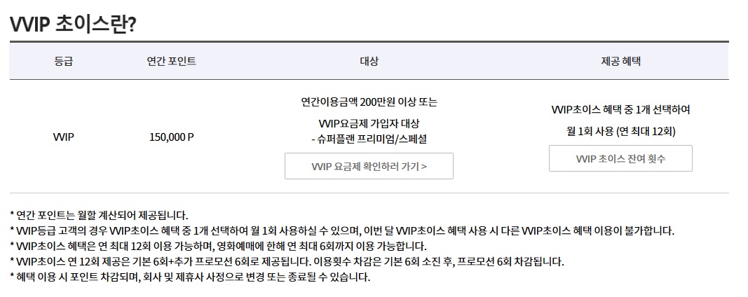- 롯데시네마 : KT 멤버십 고객 온라인 최대 8천원 할인 (본인 + 동반1인 포함), (12,000원 이상 15,000원 이하 티켓에 한정), 조조/우대 및 타 제휴할인 중복적용 불가, 현장할인 불가, 온라인 할인 제외(프리미엄칠곡, 충장로, 광주광산)