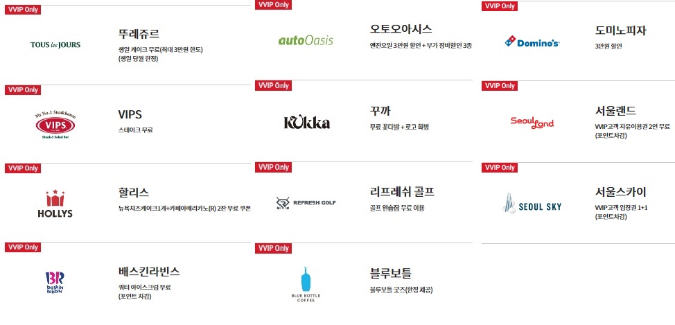 - 배스킨라빈스 : 파인트 30%할인, 중복할인불가, 통합 월1회, 일부 특수점포 제외