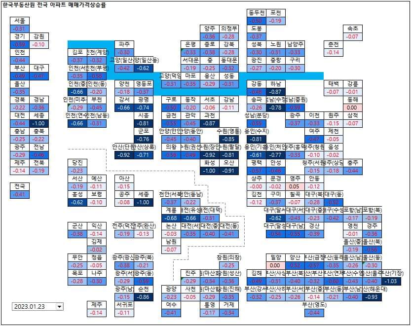 '23.01.16. 전국 아파트 매매가 상승률 부동산 애널리스트 이상우