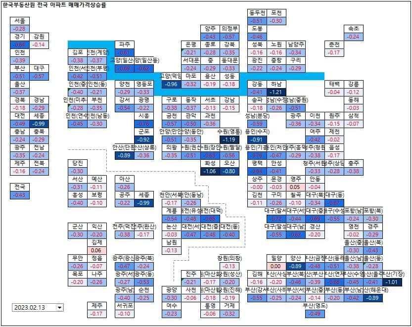 2/13 전국 아파트 매매가 상승률(한국부동산원)