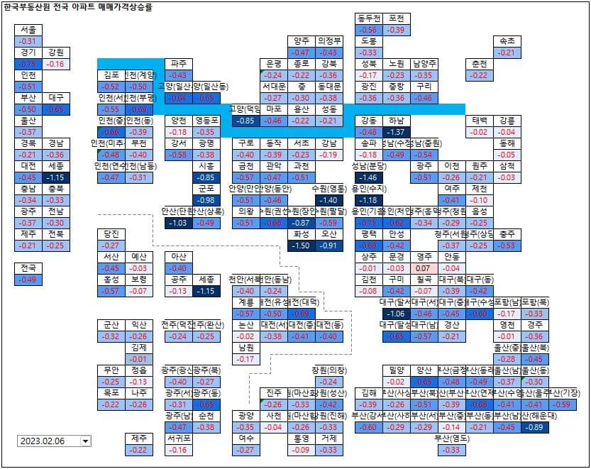 | 2월 6일 전국 아파트 매매가 상승률(KB은행) 이상우 부동산 애널리스트 (0) | 2023.02.13 |